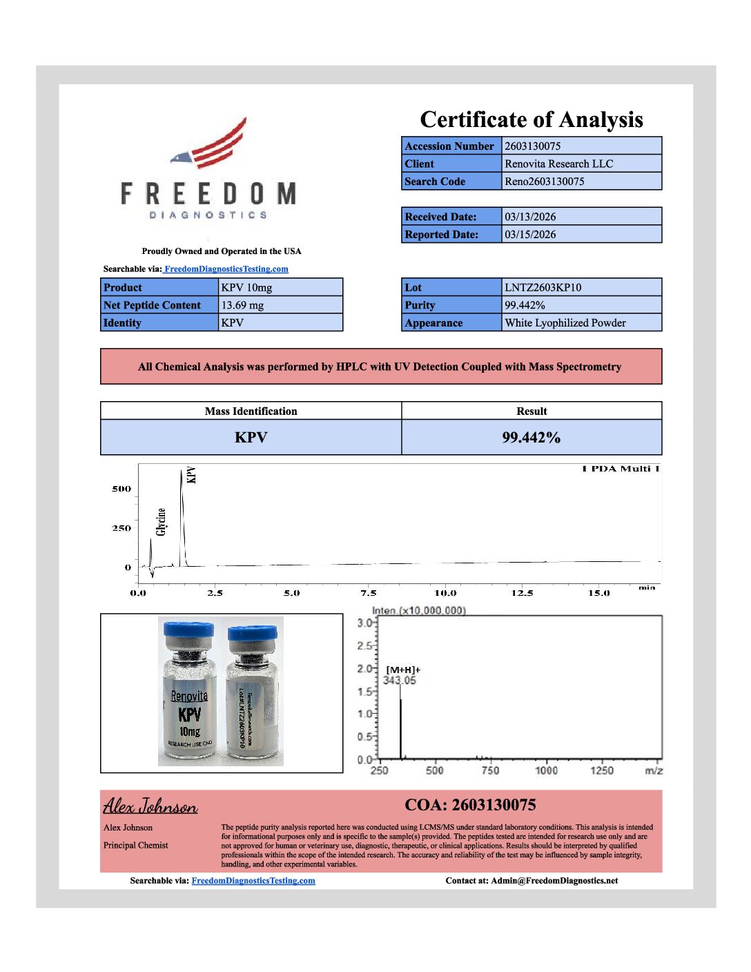 The KLOW Stack expands on the Glow Stack by introducing two 10 mg vials of KPV, a synthetic tripeptide fragment of α-MSH that is widely examined in research settings involving inflammation modulation, epithelial barrier integrity, and gut-skin axis pathways.